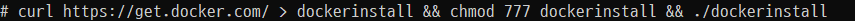 curl https://get.docker.com/ > dockerinstall && chmod 777 dockerinstall && ./dockerinstall