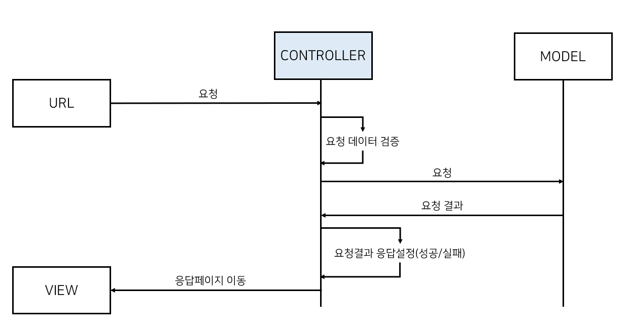- 사용자의 요청을 받아서 응답을 제어하는 역할